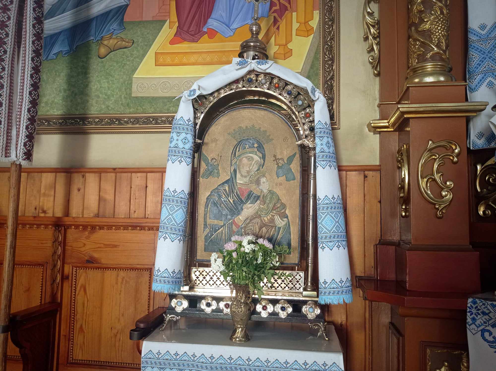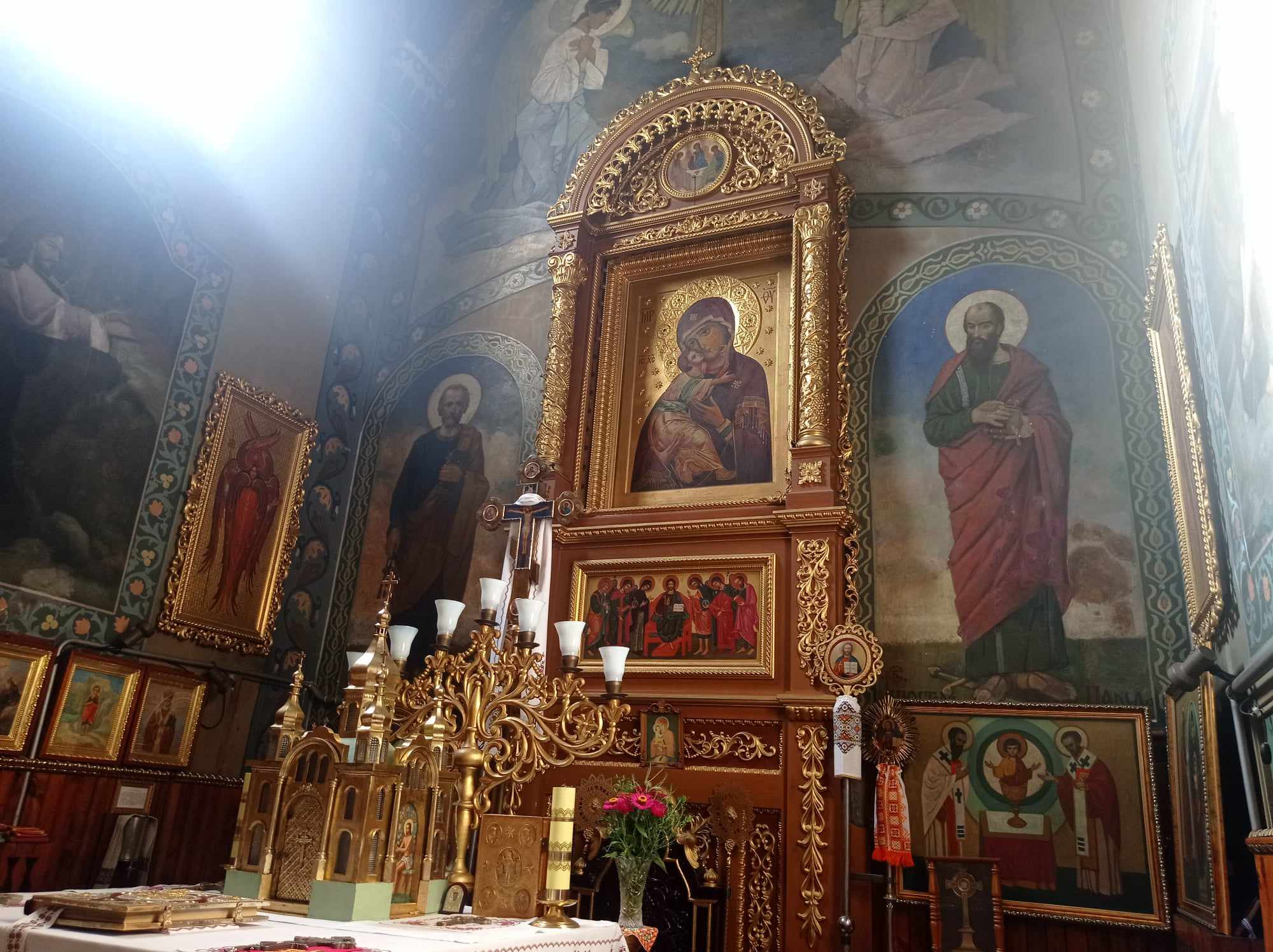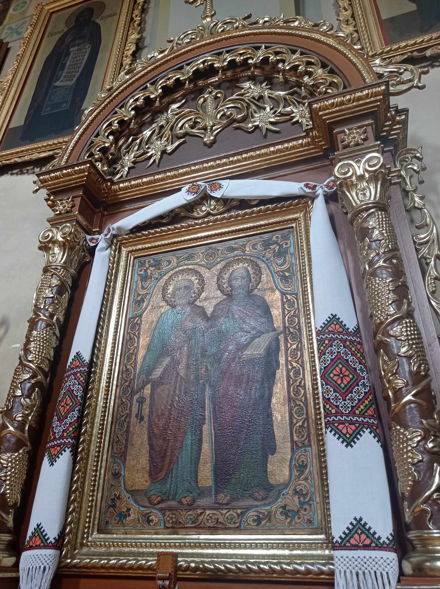 У святилищі храму впадає у вічі запрестольна ікона Богородиці, що має цікаву особливість: на кожне дванадесяте свято її змінює ікона того чи того празника. Зазвичай у храмах такий процес стосується ікони, що лежить на тетраподі, проте у Петро-Павлівському храмі свято супроводжується зміною великого зображення в центрі святилища.