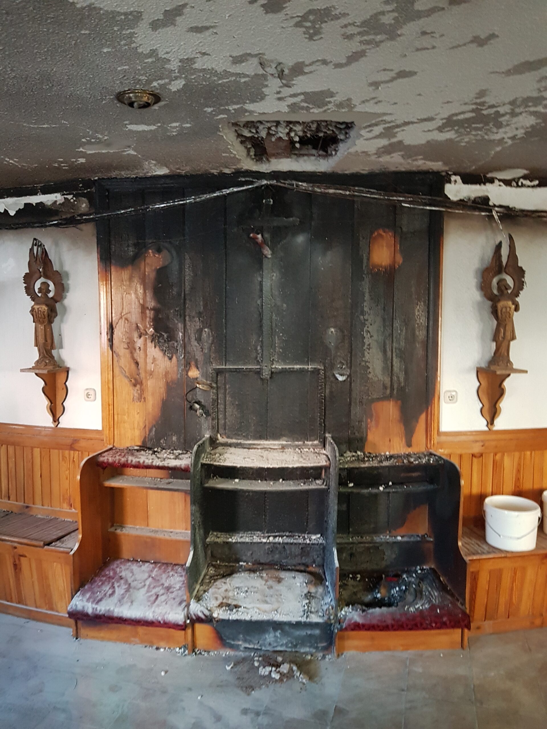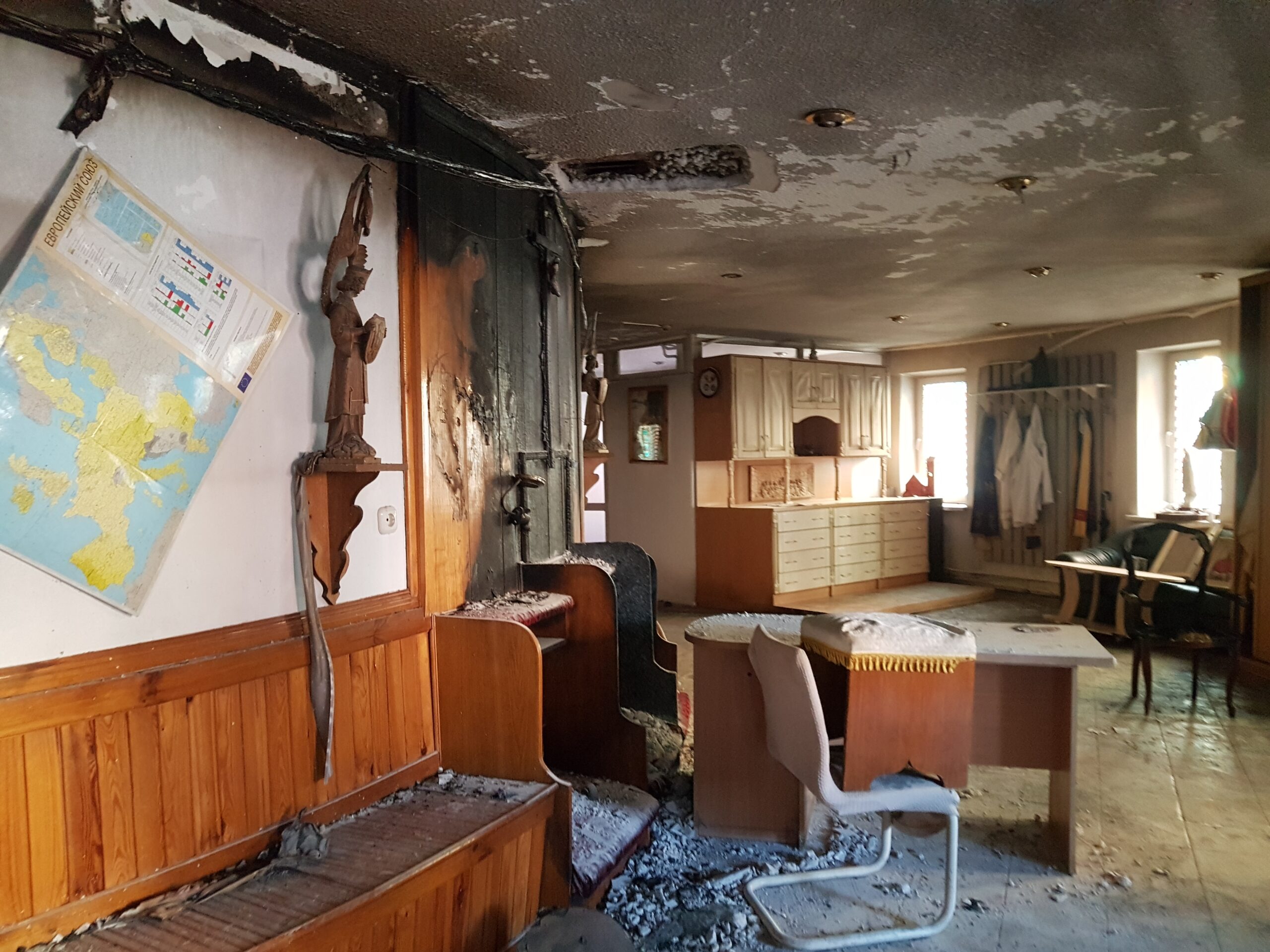 В приміщеннях храму Червоного костелу після того як туди вкинули запальну суміш. Фото: chyrvony.by