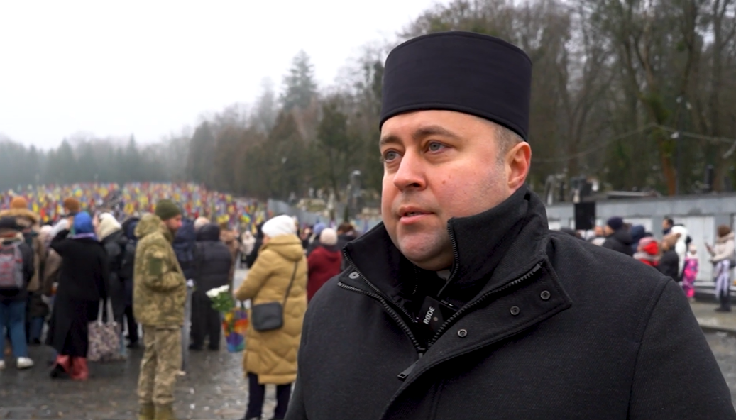 Окрім колядок на кладовищі відбулась поминальна молитва, які звершив о. Тарас Михальчук, настоятель Гарнізонного храму свв. апп. Петра і Павла у Львові.