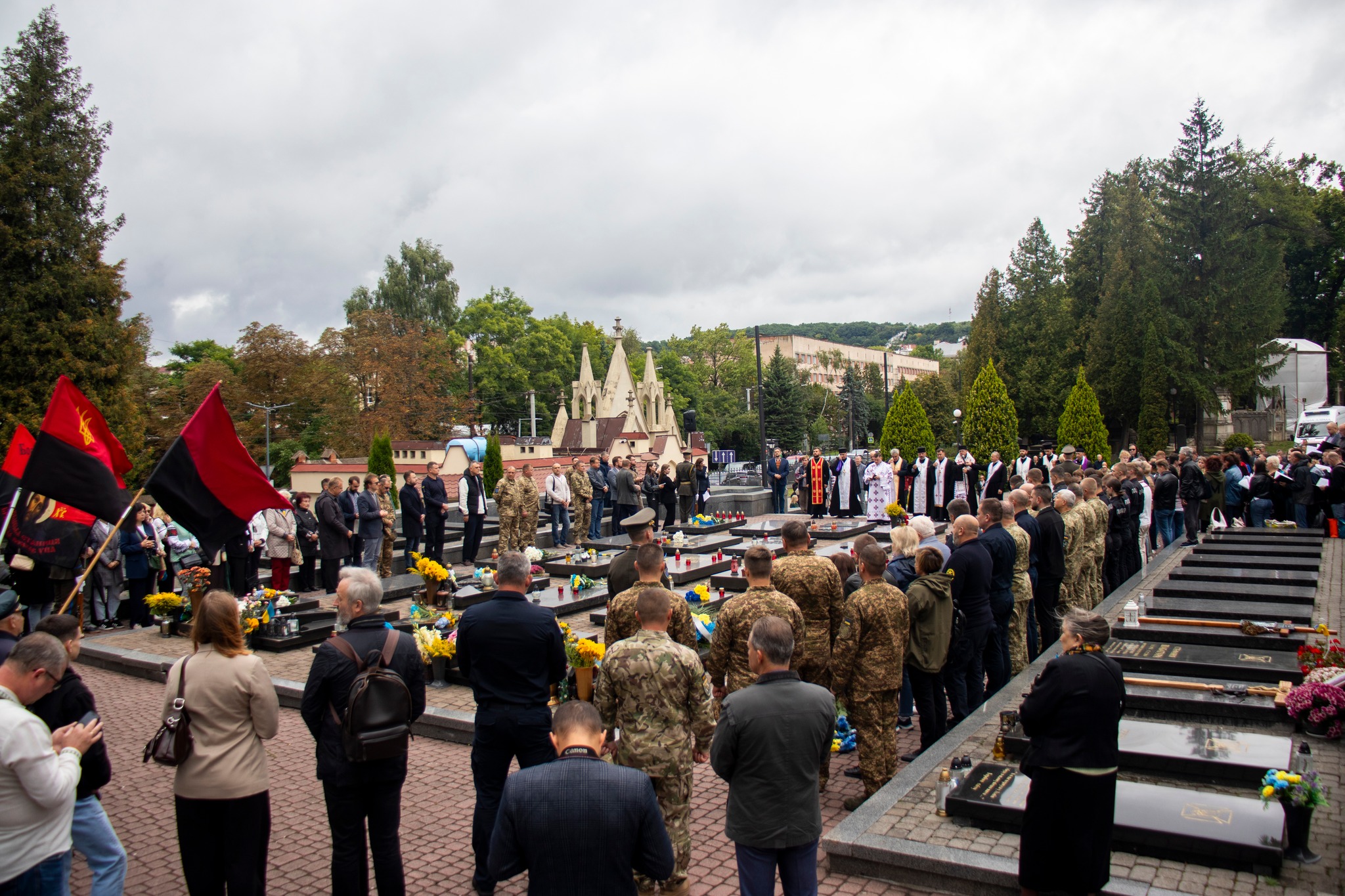 Панахиду звершили на полях Почесних поховань №67, №76 та №86А Личаківського цвинтаря. Спільну молитву очолив єпископ-помічник Львівської Архиєпархії УГКЦ Володимир (Груца).