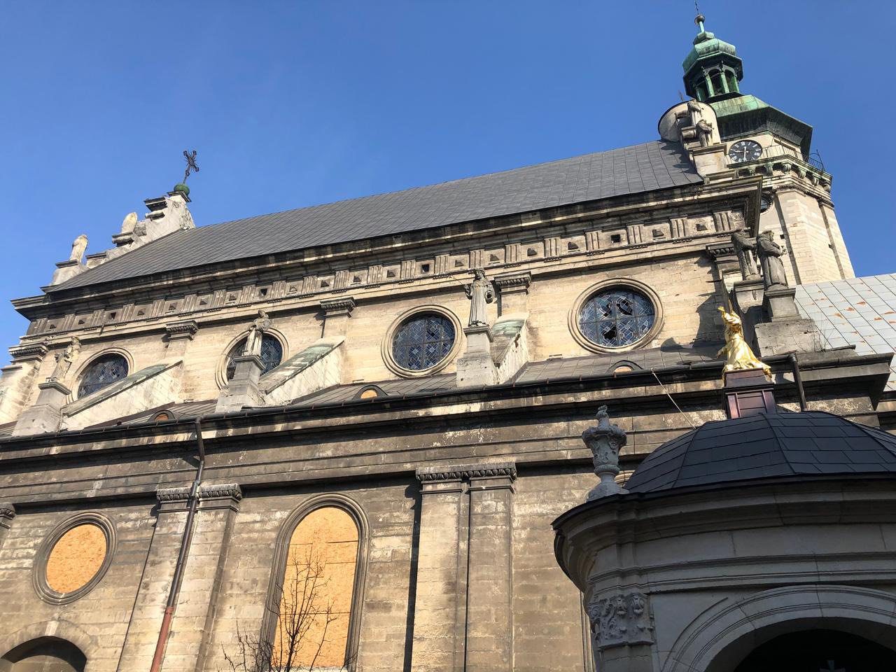 «Сама церква, на щастя, постраждала незначно – з 16 вітражних композицій вибито 4, ще одна має невелике пошкодження. Більшість з них врятував завчасно встановлений захист. Зачепило і дзвіницю 1734 року, де також є руйнування. В архіві, що входить до комплексу, вибито 8 вікон», – йдеться у повідомленні.