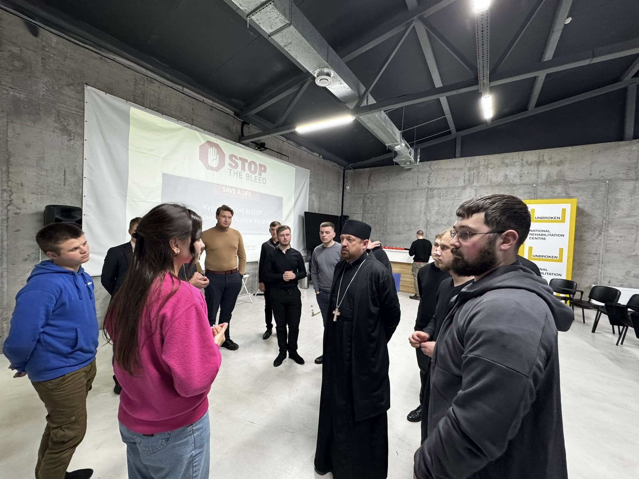 Студенти Львівської православної богословської академії пройшли навчальний курс «Stop the bleed» та навчилися зупиняти кровотечі. Заняття відбулося у навчальному хабі «Unbroken» у Львові.