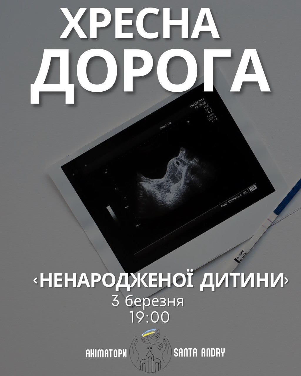 «Це буде Хресна дорога — роздуми над стражданнями Ісуса Христа крізь призму болю ненародженої дитини. Молитва за життя, за зцілення ран, за прощення і милосердя. Разом станемо на захист життя. Разом довіримо Богові те, що болить. Разом проситимемо про надію для кожного серця. Нехай ця зустріч стане часом тиші, правди та любові. Чекаємо на тебе», – йдеться у повідомленні.
