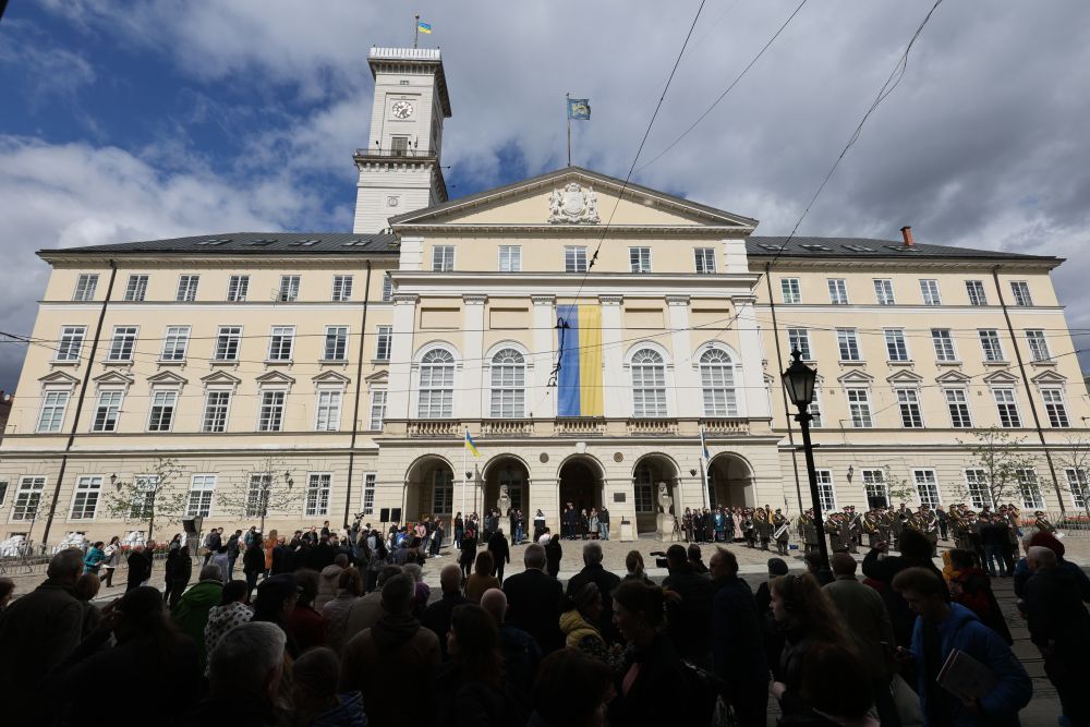 Перед міською Ратушею в рамках урочистості хвилиною мовчання вшанували пам’ять полеглих Героїв та померлих депутатів перших скликань, повідомляє Львівська міська рада. Музично супроводжували захід оркестр Національної академії сухопутних військ імені Гетьмана Петра Сагайдачного та хор «Гомін». Кульмінацією стало виконання Державного Гімну України, під звучання якого депутати 1-го демократичного скликання та депутати нинішнього скликання урочисто підняли над вежею Ратуші Державного Прапора.