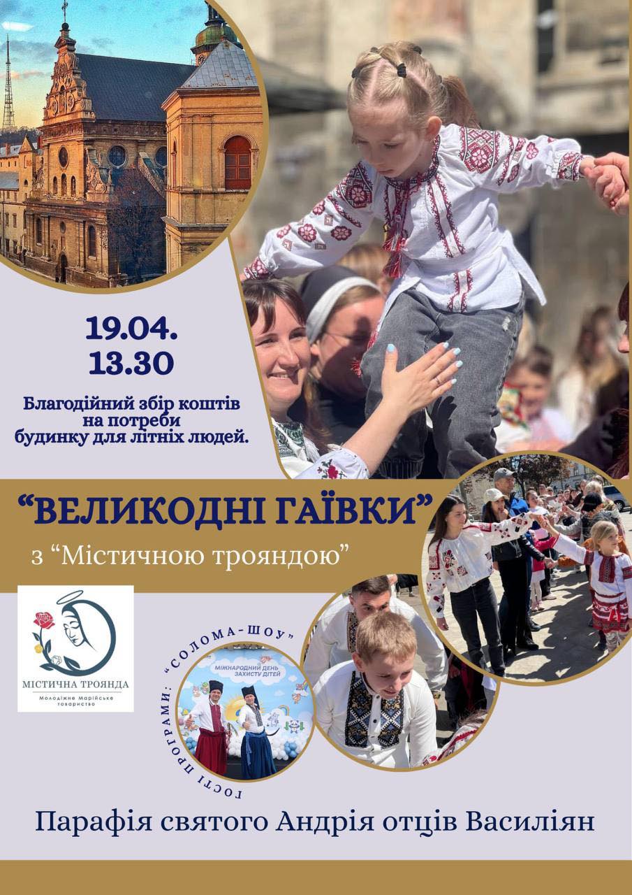 Молодіжне Марійське товариство «Містична троянда» при церкві святого Андрія у Львові запрошує на Великодні гаївки.