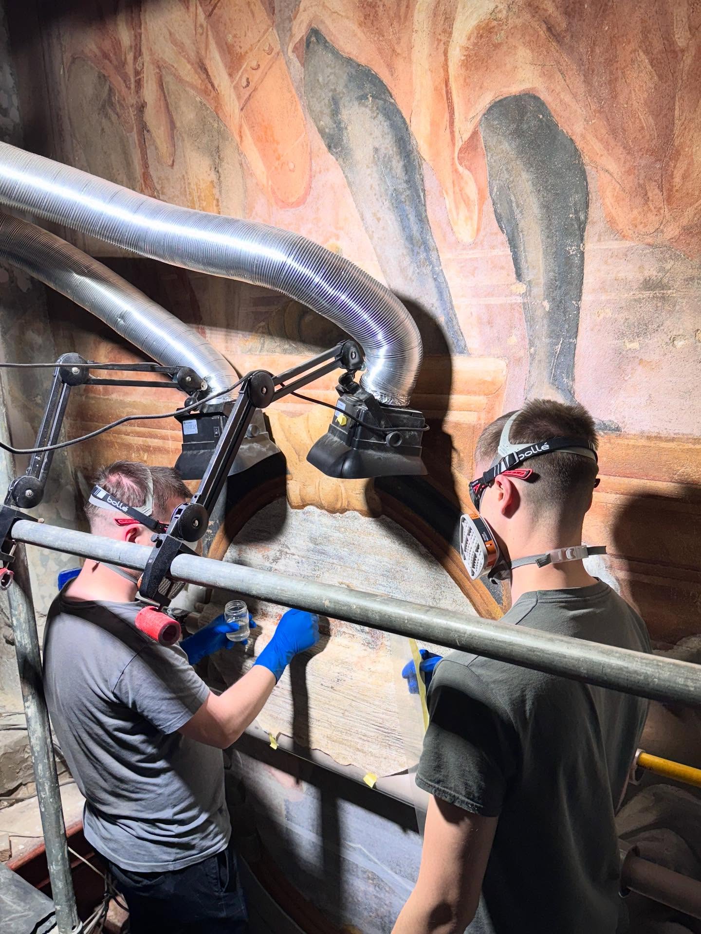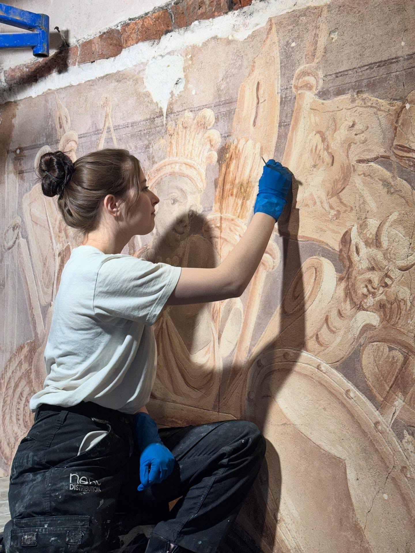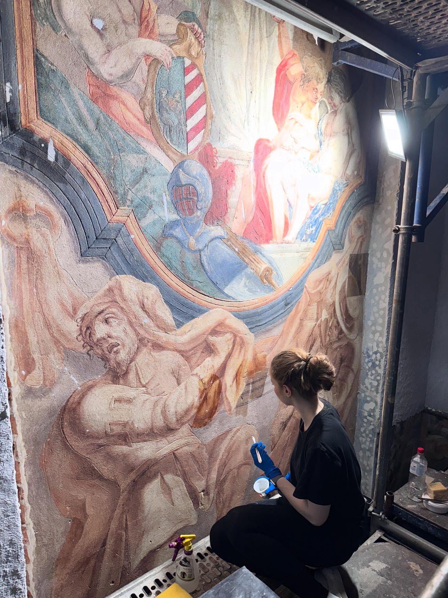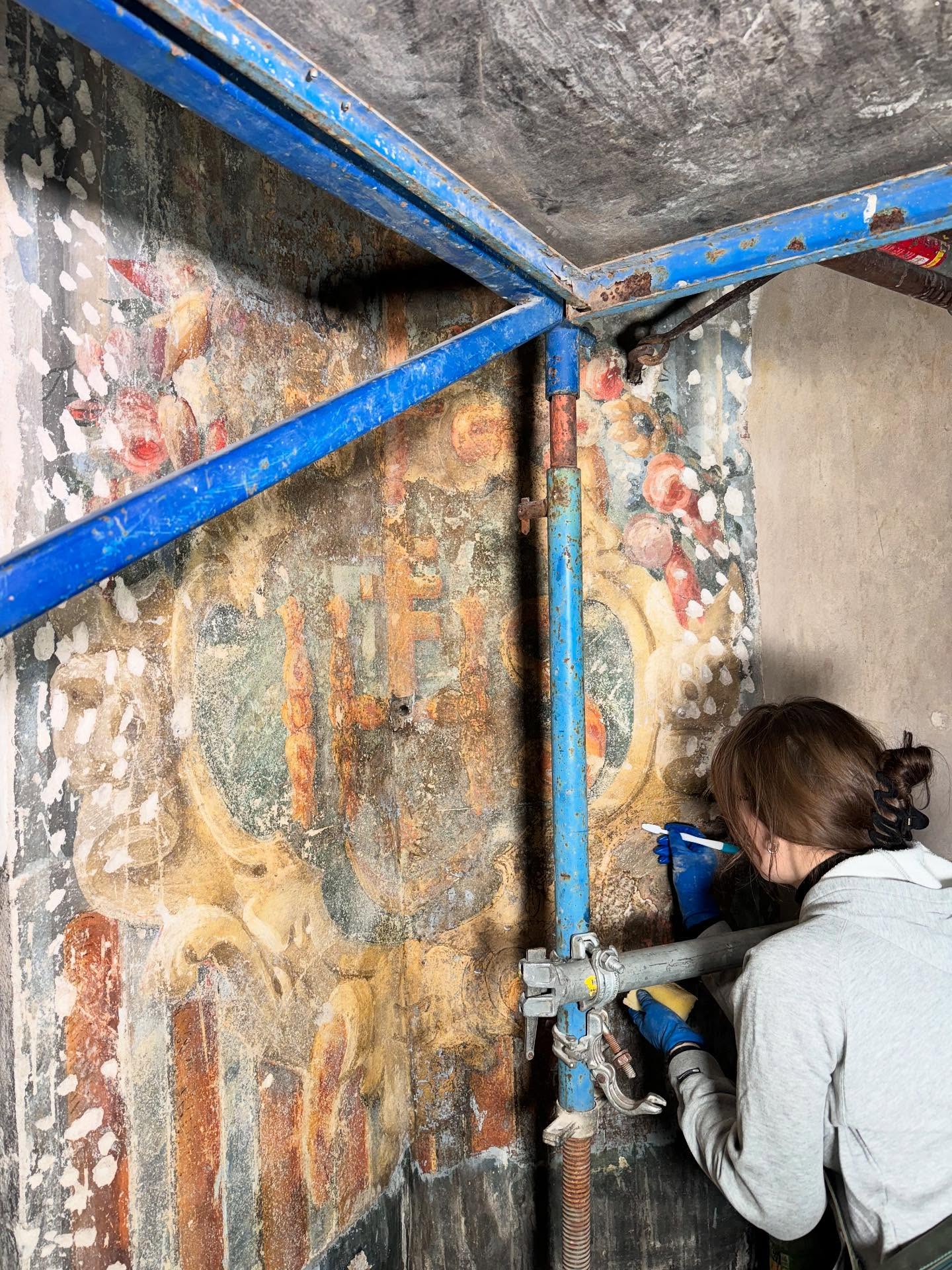 «Реставраційні роботи в святилищі Гарнізонного храму свв. апп. Петра та Павла у Львові продовжуються. Наша команда активно працює над розкриттям фресок з-під пізніших перемалювань, що багато років приховували від нас захоплюючі деталі роботи Себастіана Екштайна», – зазначають у публікації.