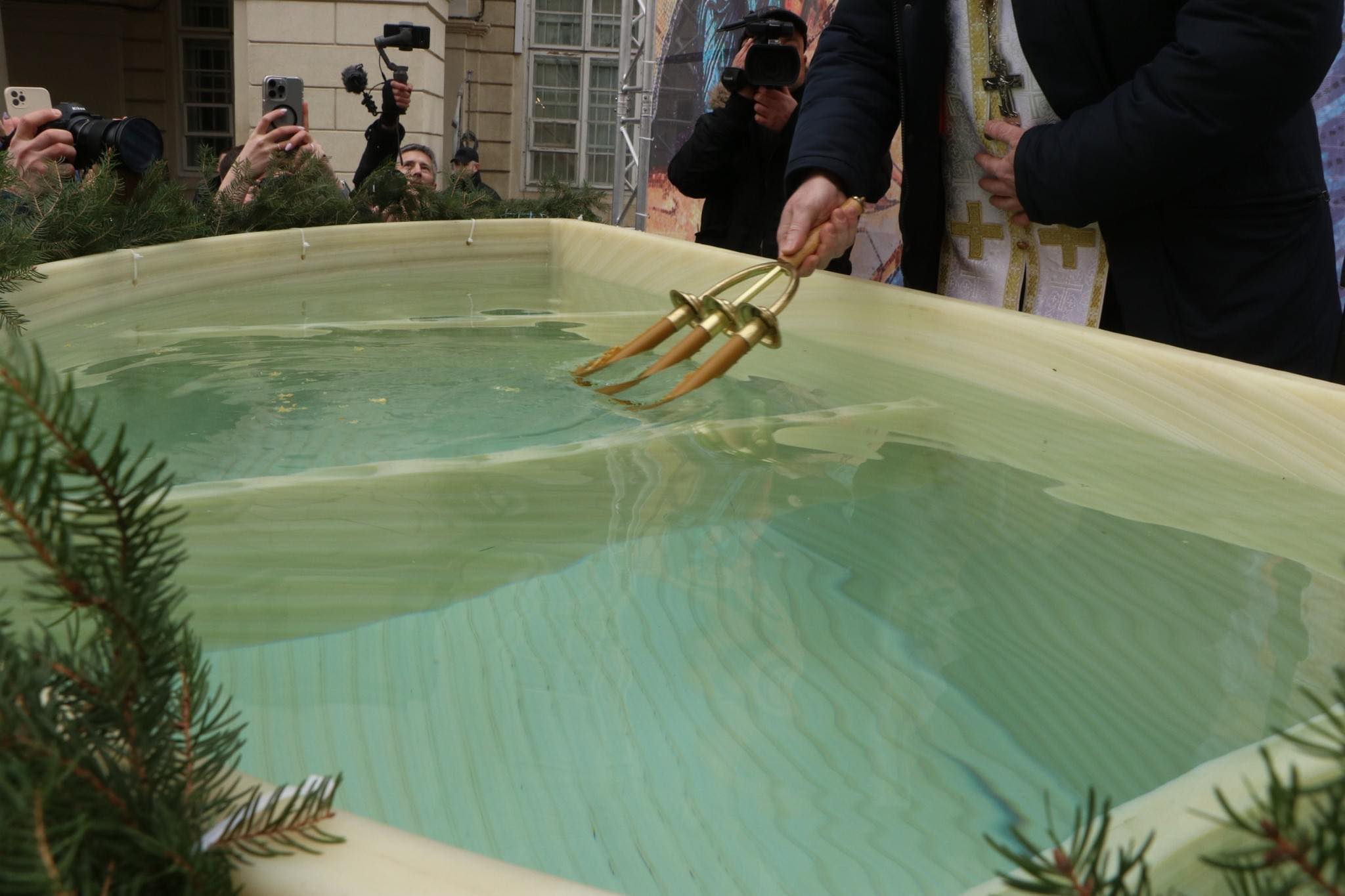 Чин освячення води здійснили для львів’ян військові капелани різних конфесій, які опікуються українськими воїнами та постійно духовно супроводжують їх. Традиційно воду освятили у великому резервуарі, звідки мешканці міста протягом дня можуть узяти її до своїх домівок.