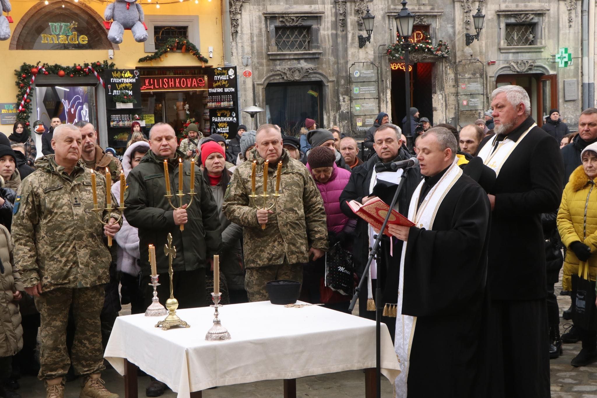 У день свята Богоявлення Господнього, 6 січня 2024 року, на площі Ринок перед львівською Ратушею відбулося щорічне загальноміське освячення води. Вже вдруге його здійснили військові капелани різних конфесій.