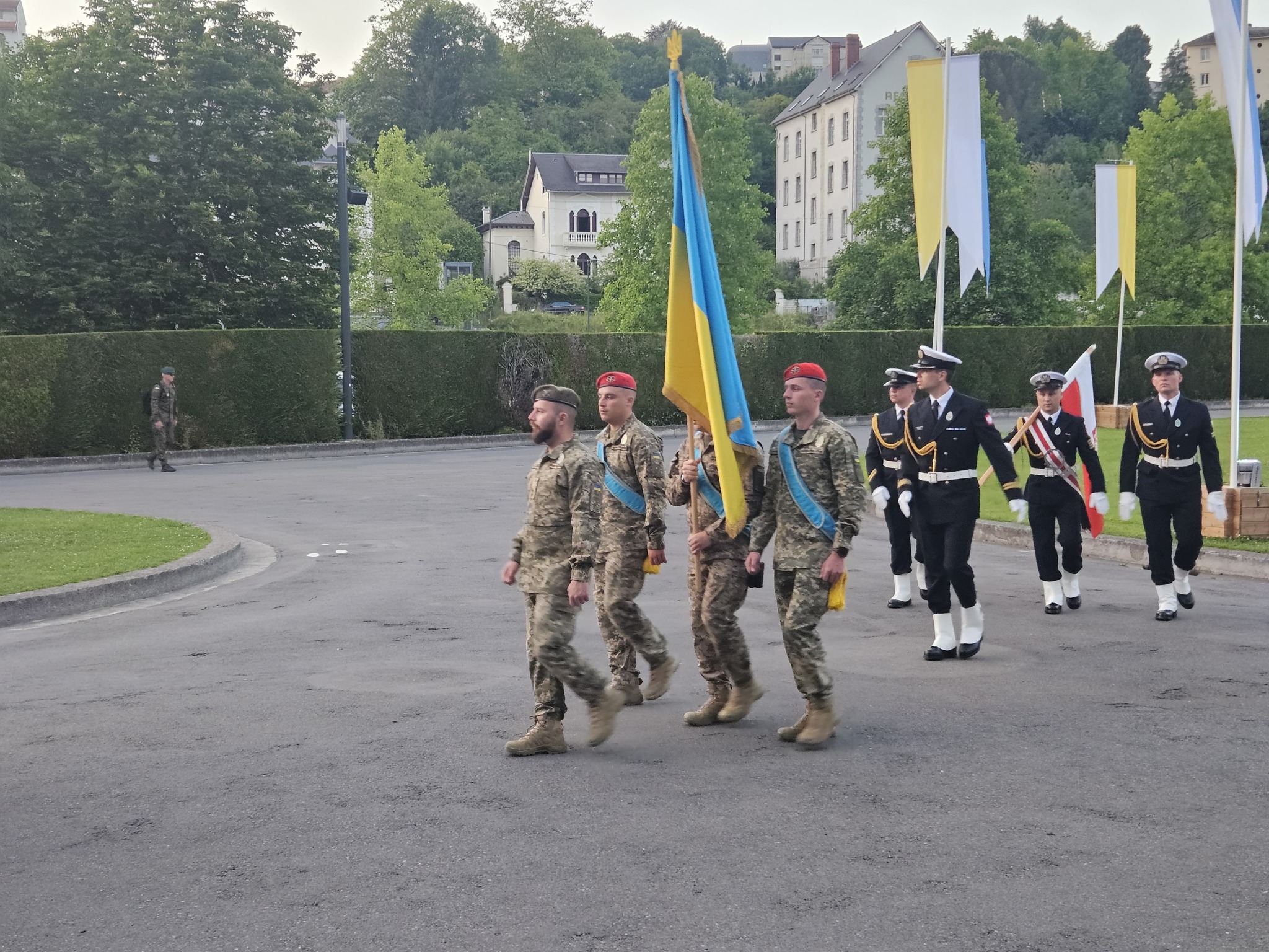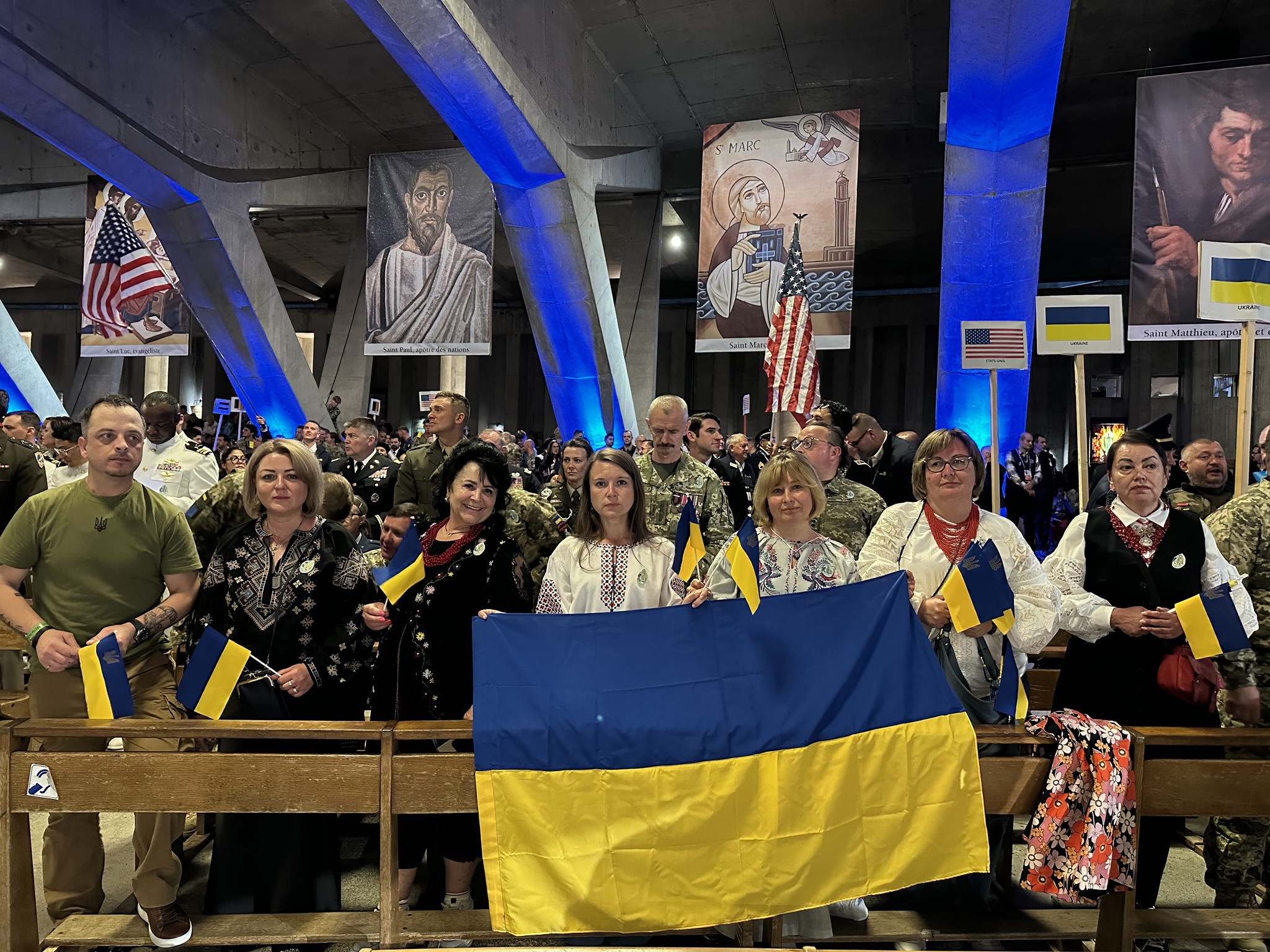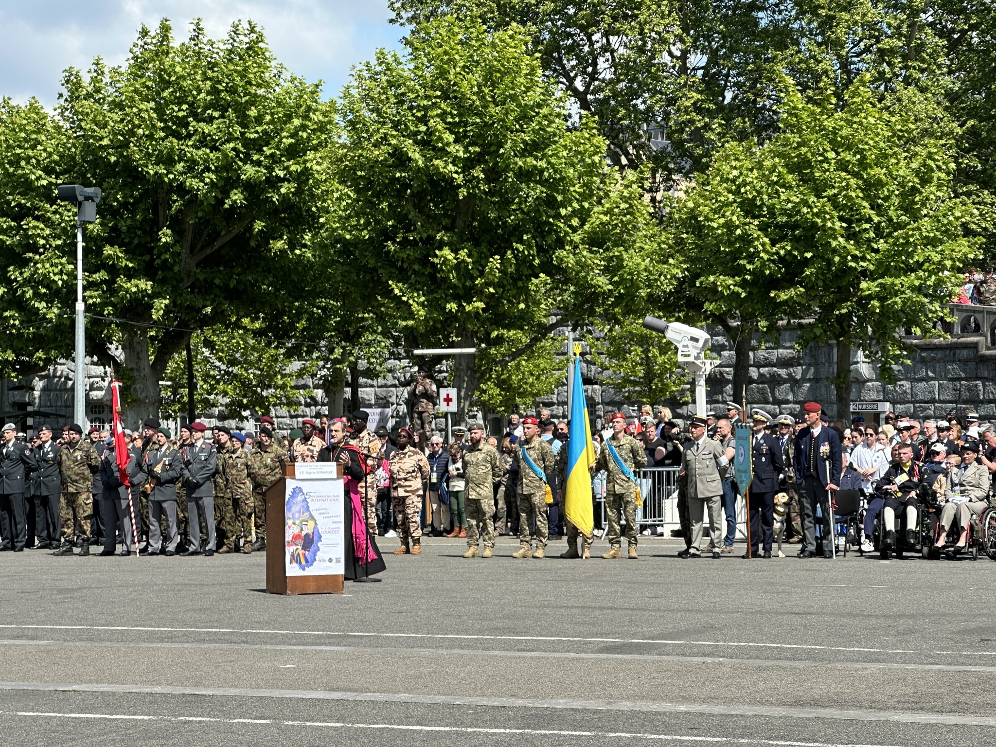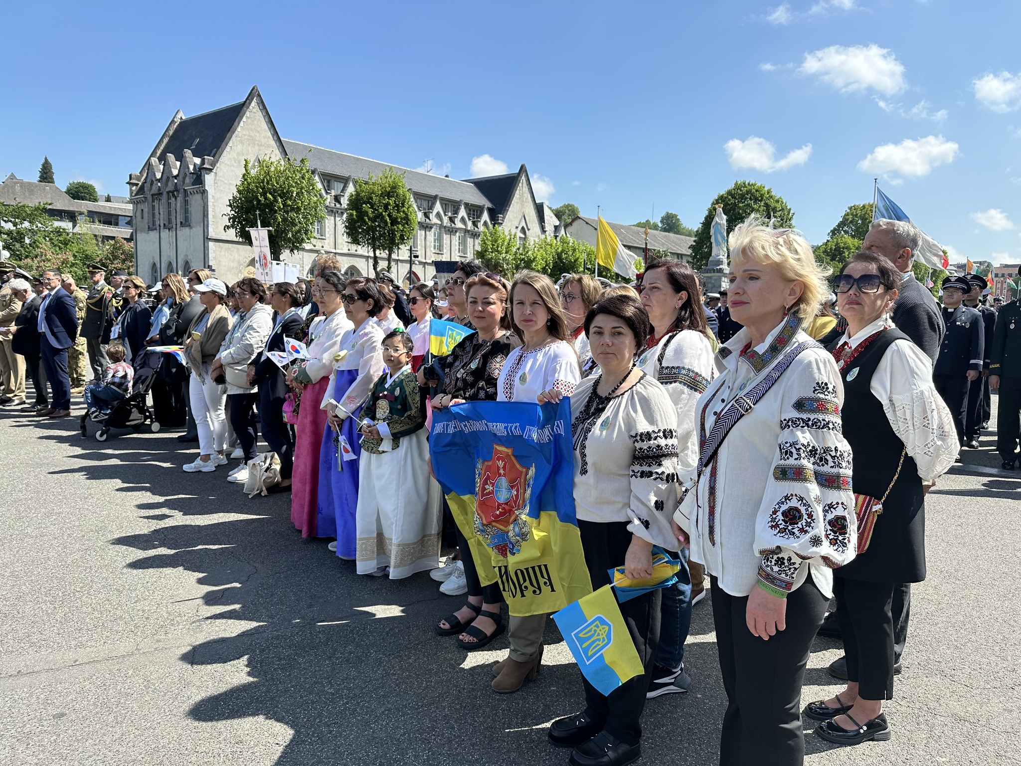 Українські військовослужбовці з Державним Прапором України очолили ходу під час урочистого відкриття паломництва. Паломництво до Люрду присвятили молитві за мир в Україні та цілому світі.