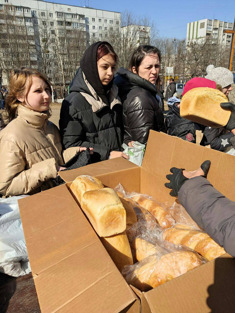 Ми почали надавати допомогу спонтанно. Пригадую, як минуло два-три тижні війни і нам привезли гуманітарну допомогу. Її мали доставити в інше місце, але там щось не склалось. І тоді священник Володимир зі Сколе привіз її до нас. Пригадую, це була субота, ввечері ми розвантажили цю допомогу, а вже зранку стояла черга. І після Служби Божої ми почали роздавати. Це був перший раз, ми ще не мали досвіду, все було трошки в хаосі. Кілька днів ми роздавали цю допомогу і відзвітували про це у фейсбуці. Потреба була велика, в магазинах все розкупили, нового товару не було, люди поспіхом виїжджали. А російські війська стояли впритул до Харкова та щодня обстрілювали місто, особливо Салтівку.