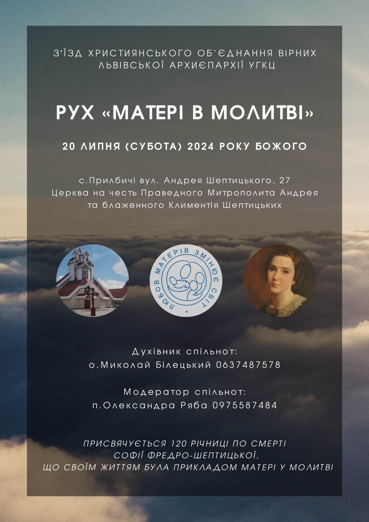 Проща «Матерів у молитві» до Прилбич відбудеться у суботу, 20 липня 2024 року у храмі на честь Праведного Митрополита Андрея та блаженного Климентія Шептицьких (с. Прилбичі, вул. Андрея Шептицького, 27).